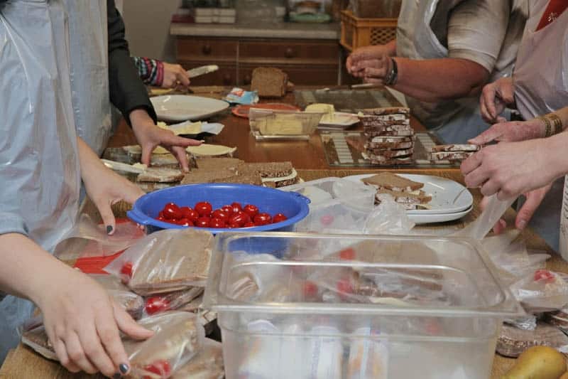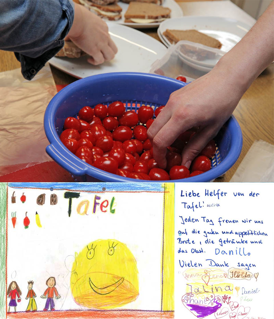 Viele Eltern oder alleinerziehende Elternteile, die von Sozialhilfe leben, müssen leider auch am Essen sparen. Um Kindern aus solchen Familien an Schultagen ein gesundes Schulbrot anzubieten, schmieren die ehrenamtlichen Mitarbeiterinnen und Mitarbeiter der Kindertafel frische Pausenbrote und liefern sie täglich an die Würzburger Schulen. Diese wichtige Hilfe wird ausschließlich durch Spenden finanziert.