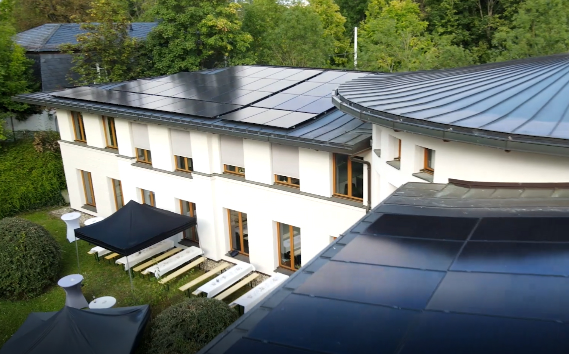 Auf Drohnenbildern blinkt und blitzt das PTG-Gebäude mit der Sonne um die Wette, seit 2021 das Dach mit einer Photovoltaikanlage ausgestattet wurde. Die Anlage gibt der Unternehmensgruppe verschiedene Möglichkeiten, ihre Energieversorgung auf grünere Füße zu stellen. Wie viel Strom insgesamt produziert wurde, kann man auf einem Bildschirm im Eingangsbereich sehen. Seit Installation der Anlage waren das 28,2 MWh Strom, was einer CO2-Einsparung von rund 11.046,50 kg entspricht; oder dem Einpflanzen von 415 Bäumen.